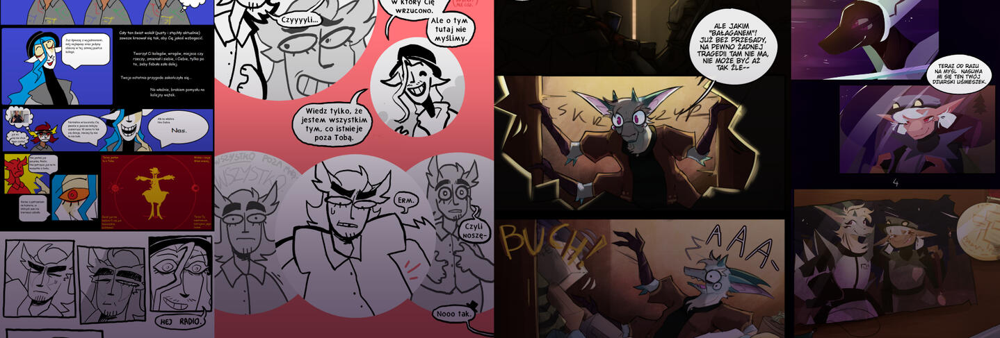 Początek 2023 (porzucone)Zbiór krótkich, smutnych pasków i parę eksperymentów z medium komiksu.